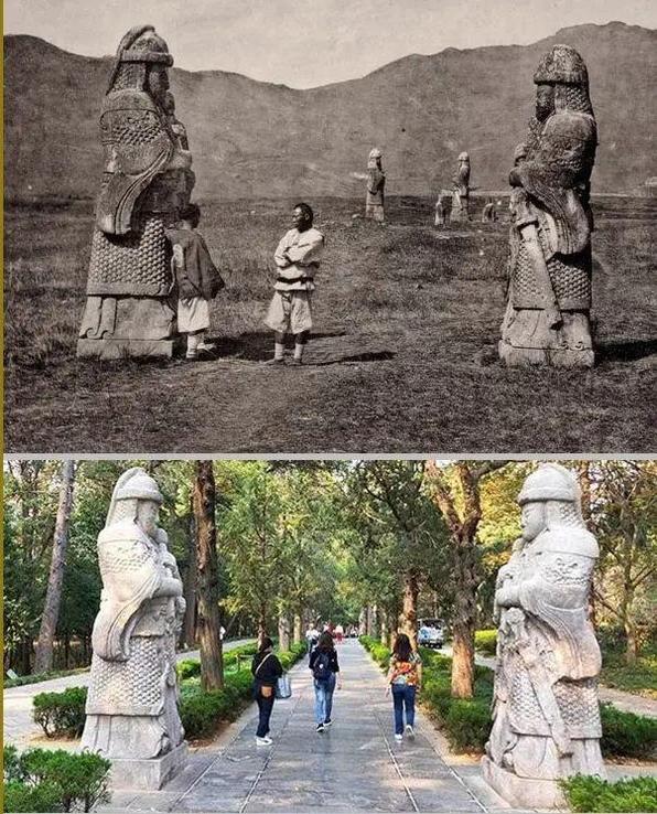 //这些古物真是见证人间沧桑。//换了人间。。。//这对比照片拍的好 // 1869年与2019年 南京明孝陵两侧的武士